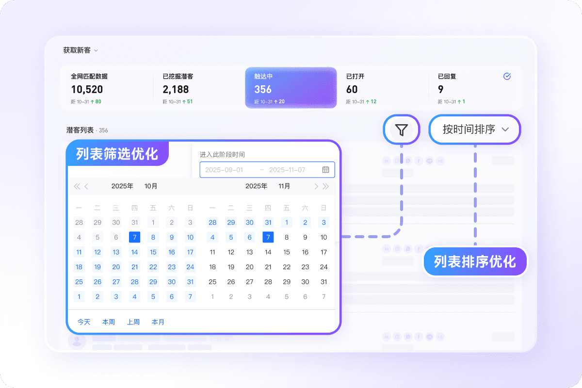 支持对潜客列表进行更灵活的时间筛选和更贴合业务场景的排序逻辑