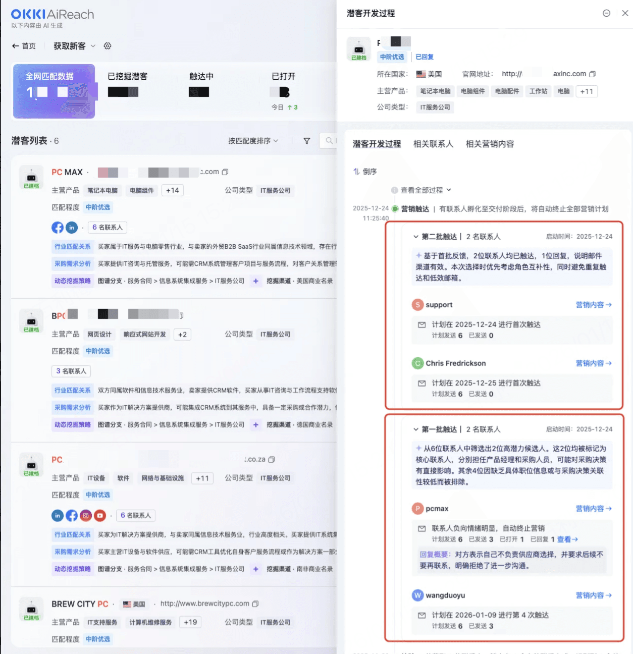 后续批次:如前一批未获得意向回复,系统会自动选择下一批优质联系人继续触达。