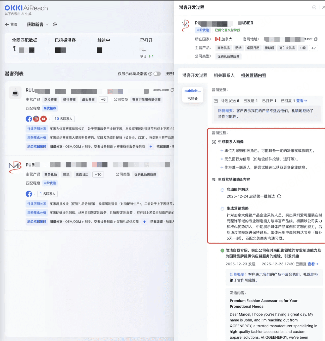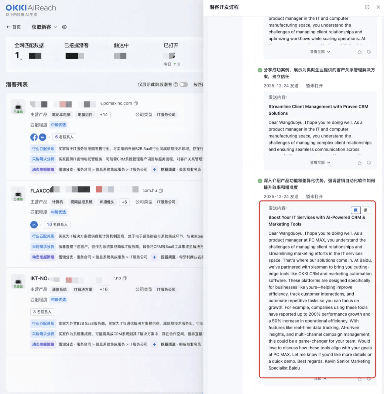 每封邮件都将结合:卖家信息、买家信息、联系人信息写出个性化的开发邮件,并且在计划发送的前一天生成更具针对性的开发信。