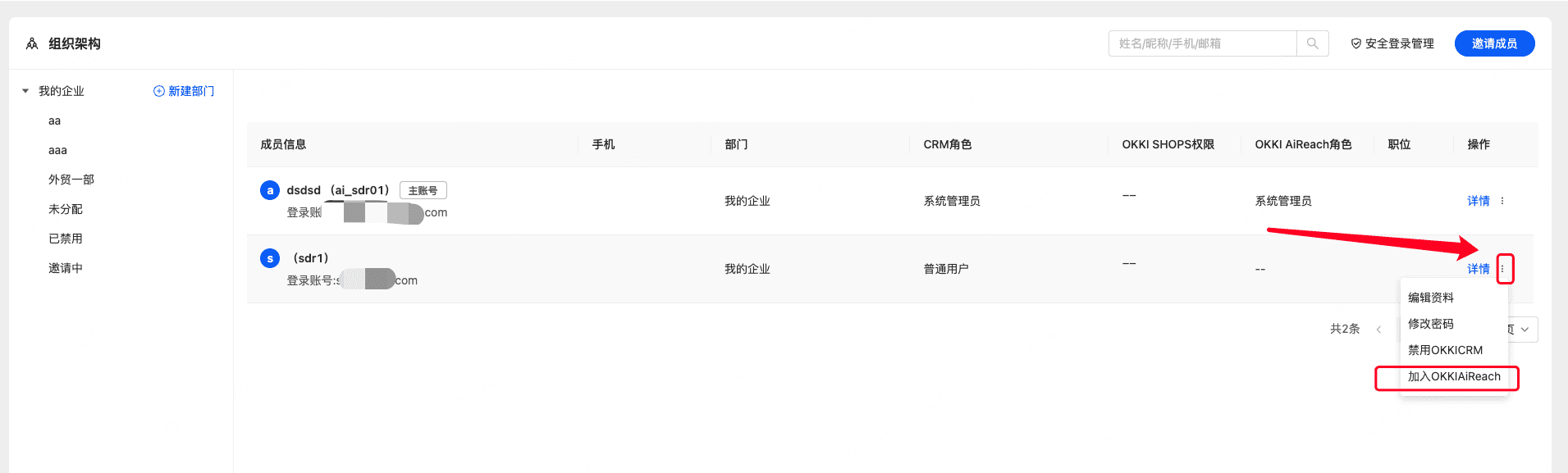 默认只有主账号才有AiReach使用权限,主账号也可以授权给其他账号,需注意:AiReach是全公司共享一份数据,给不同的账号配置AiReach的权限,但是所有的账号看到的都是一份数据