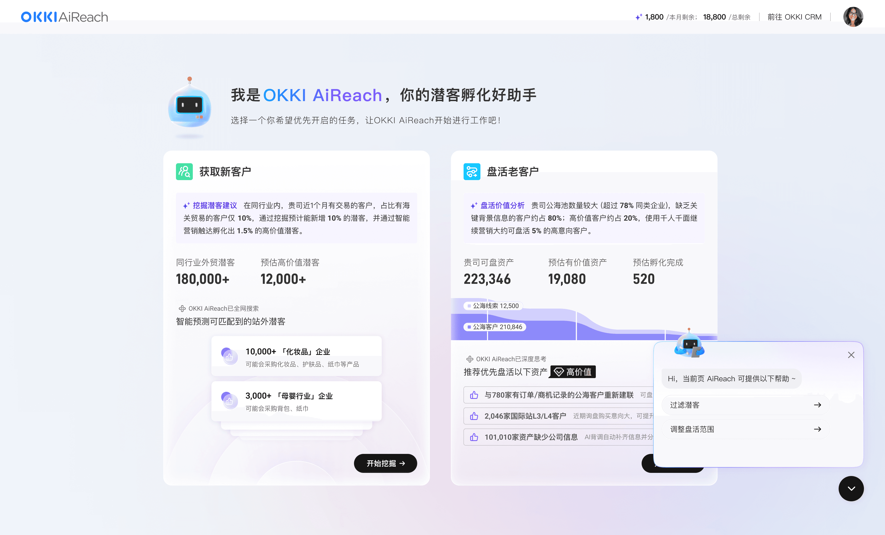 启动任务,选择AiReach工作场景,是想要挖掘新客还是老客盘活