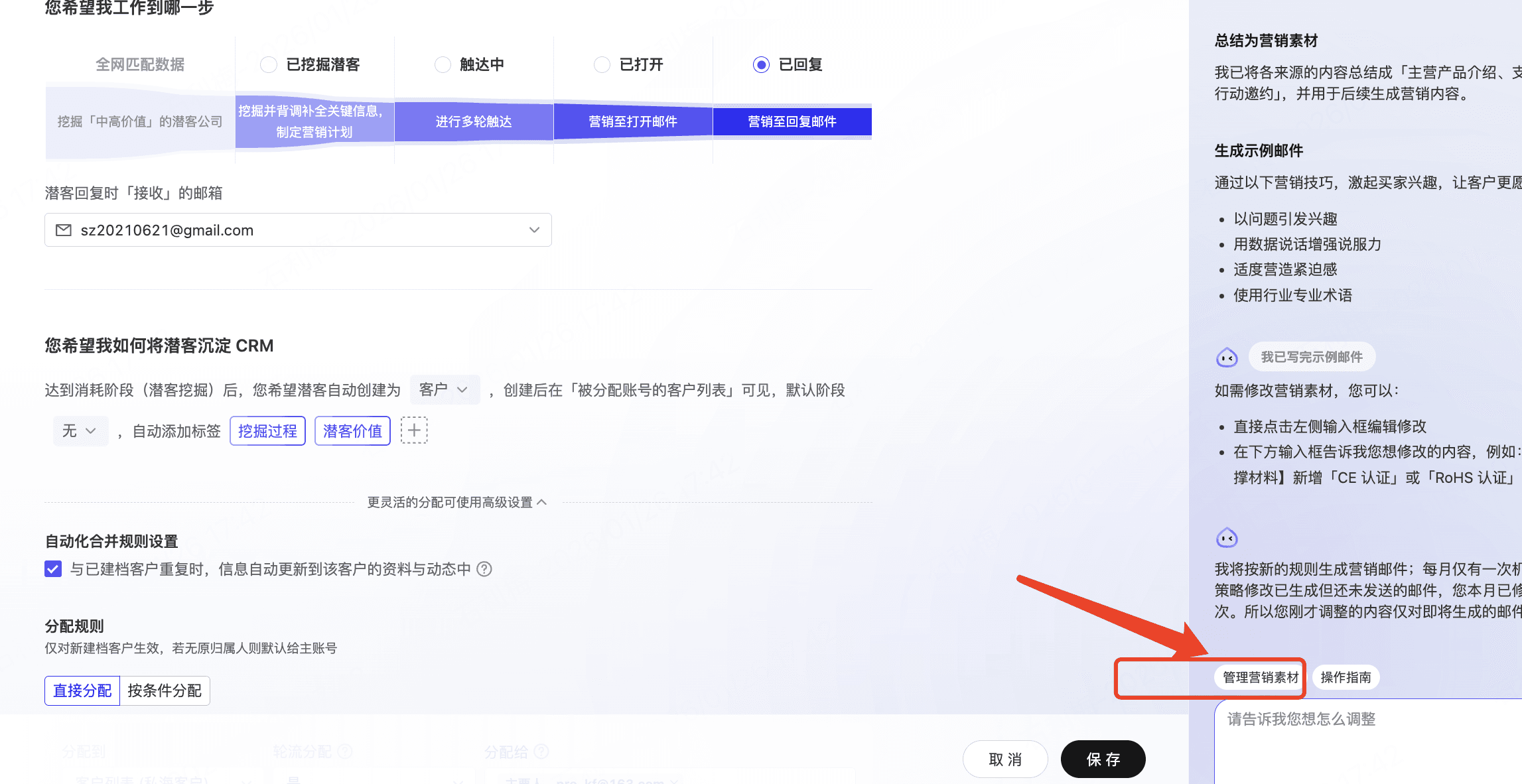 步骤三:管理营销素材及开启客户创建自动化-必选