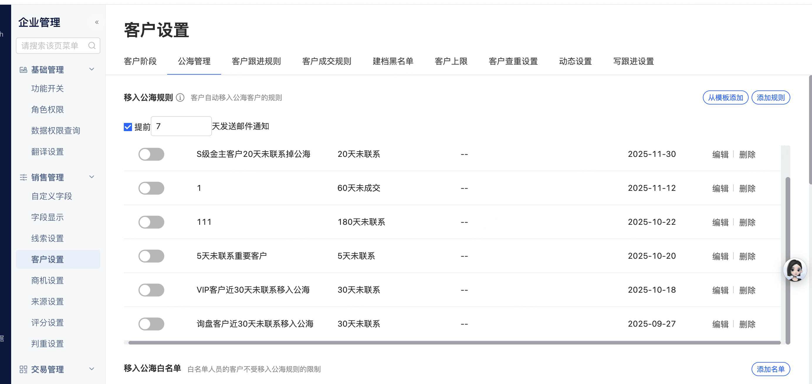由于版本不同,OKKI Lite盘活到的高价值客户需手动移到私海,smart、pro 版本可以设置轮流分配