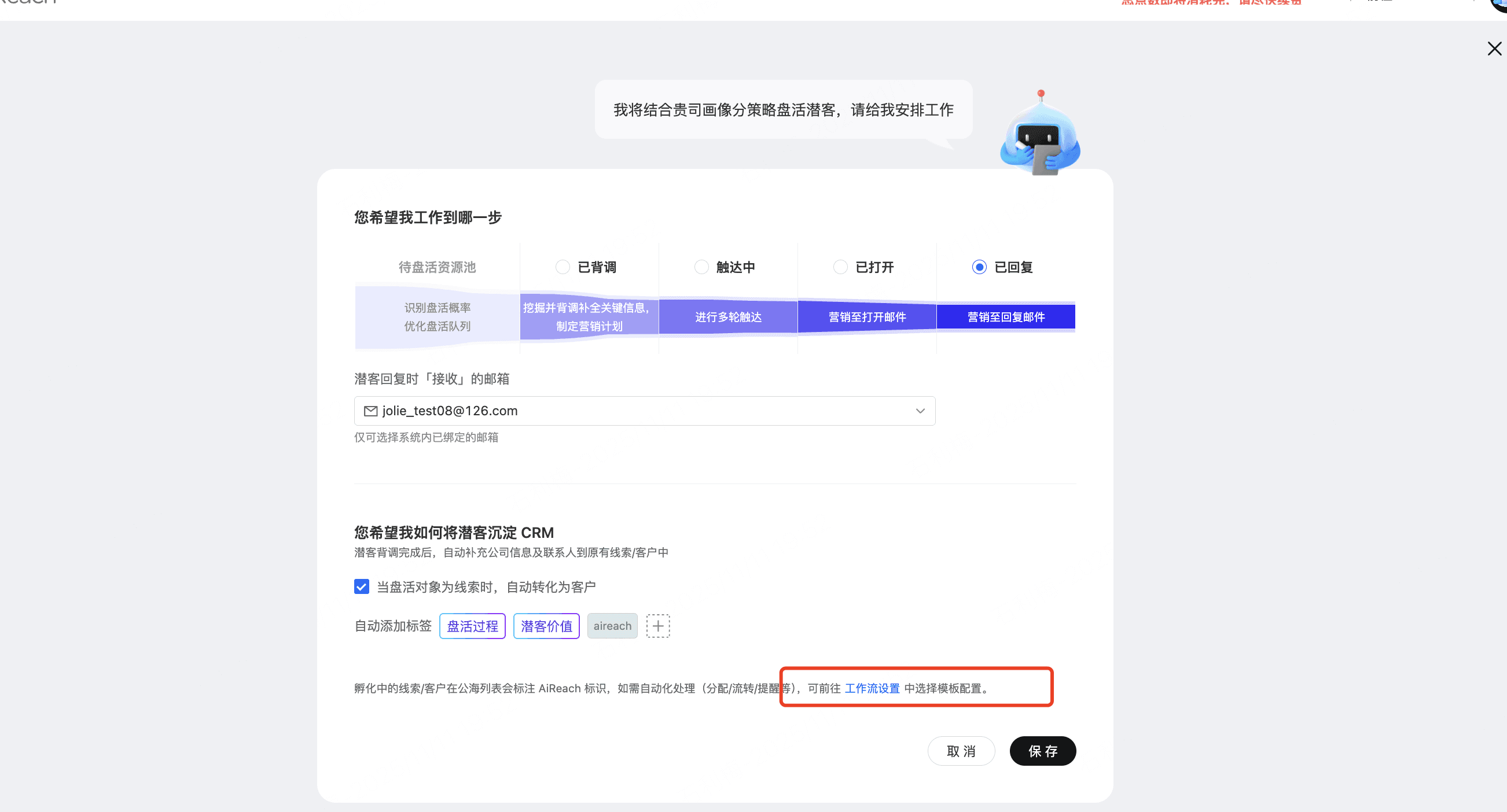 💡 建议:在启动AiReach任务前就设置好分配规则,避免客户积压。