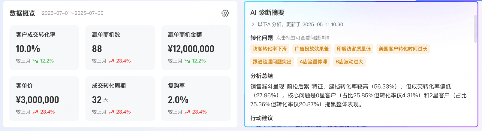 通过数据看清问题,精准定位转化卡点,优化团队策略。