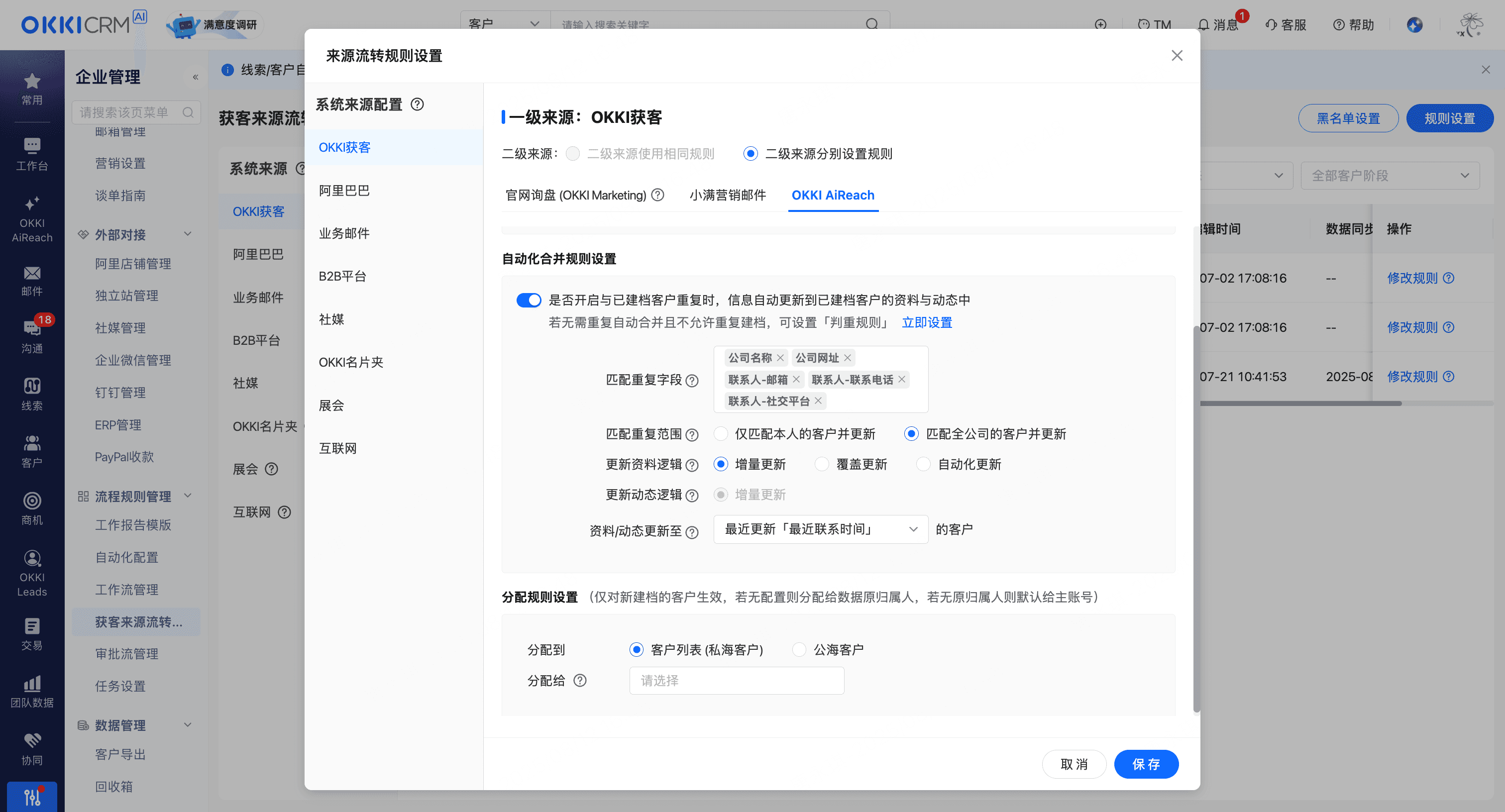 一、针对有OKKI CRM的商家与OKKI AiReach之间融合的升级